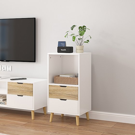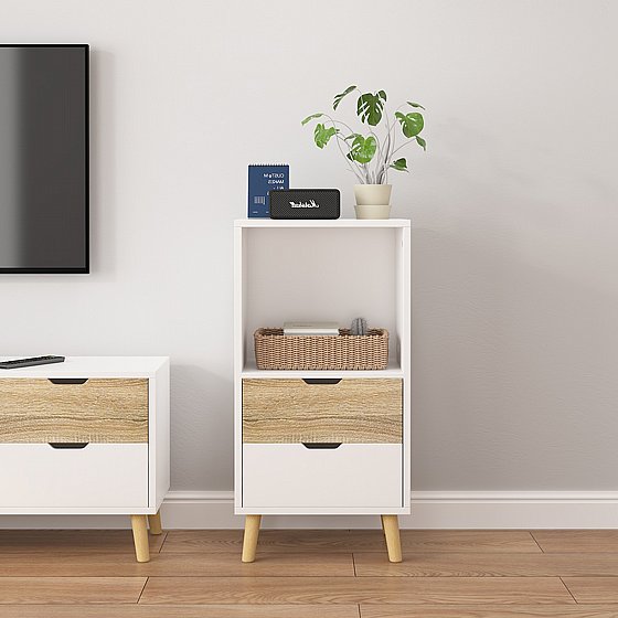 ארונית דגם אוסטין OSTIN ברוחב 48 סמ בגוון לבן ואלון מבית סטאר שופ STAR SHOP