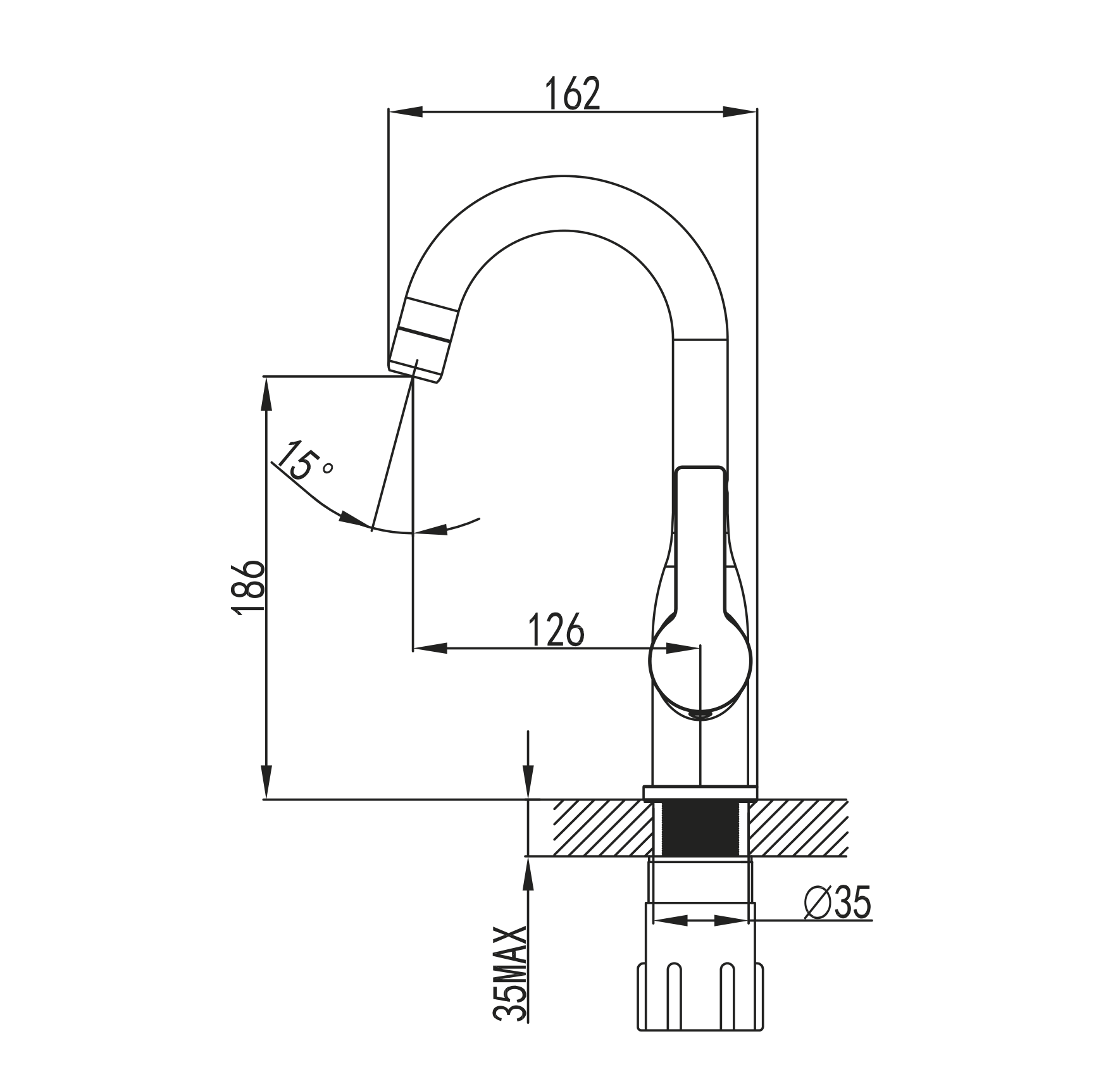 ברז ברבור עם פיה קצרה מתכווננת דגם A2 מסדרת S1000.