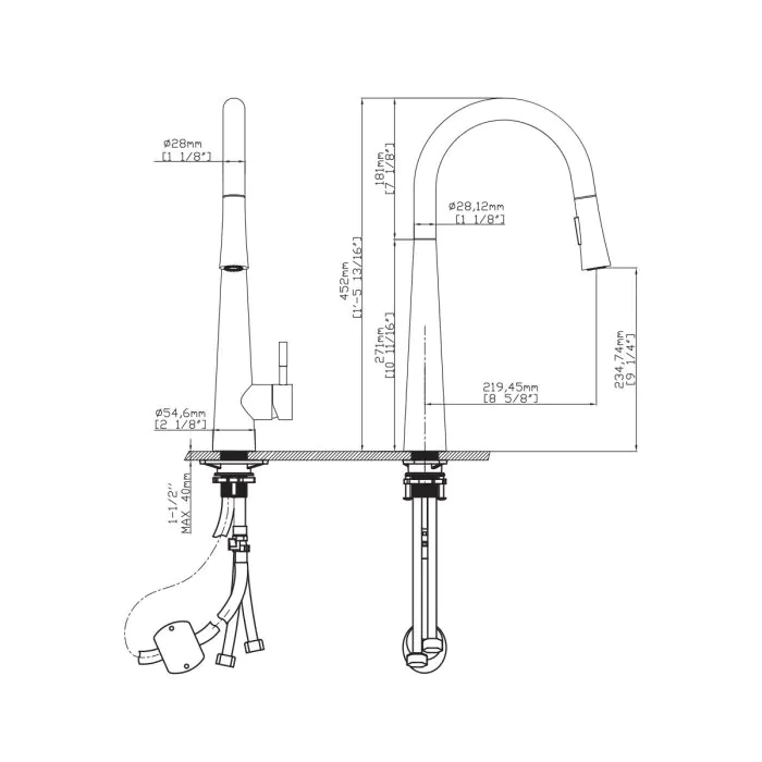 ברז מטבח נשלף Touch שחור TOMK26 ריבר RIVER