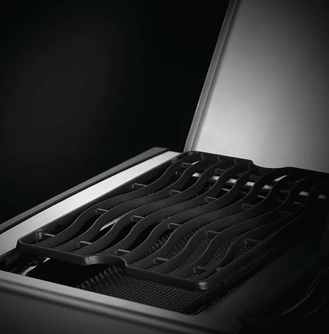 אמבטיית הגריל עשויה יציקת אלומיניום מלאה השומרת על החום בצורה מיטבית, ותורמת לשמירת החום גם בצלייה בטמפ’ נמוכה.