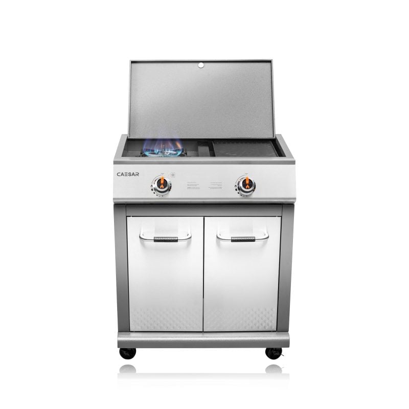 גריל גז עוצמתי בעל מדפים מתקפלים, המתאים במיוחד לשימוש במרפסות ובחללים קטנים.