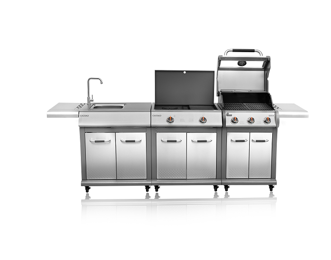שלושה מבערים מנירוסטה איכותית 304 בעוצמת חום של 14,000 BTU כל אחד, סה”כ 42,000 BTU.
