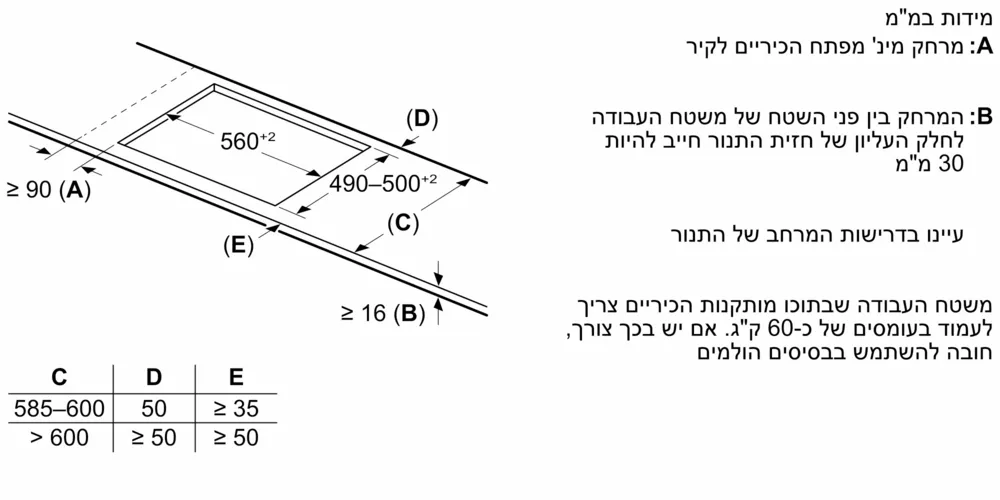– כיריים קרמיות/אינדוקציה (תלת פאזי בלבד) בעלות נוספת למתקין. (אפשרות להזמין טכנאי פרטי או מהחברה).