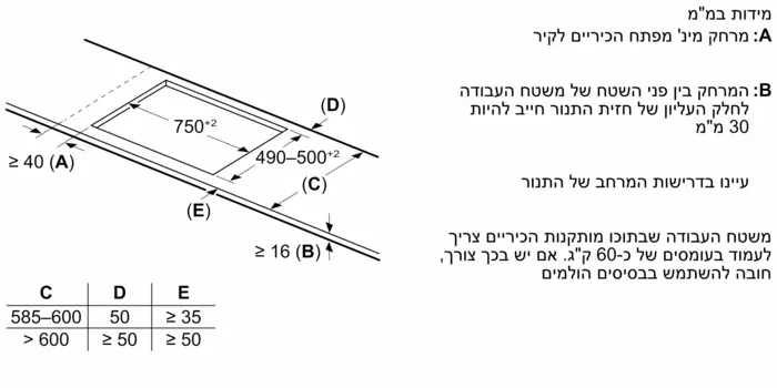 – כיריים קרמיות/אינדוקציה (תלת פאזי בלבד) בעלות נוספת למתקין. (אפשרות להזמין טכנאי פרטי או מהחברה).