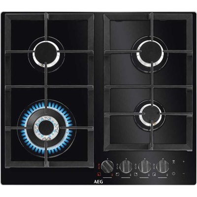 כיריים גז 4 להבות זכוכית שחורה AEG HKB64550NB א.א.ג