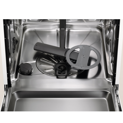 שטיפת כלים רגילה. מנגנון הסיבוב הכפול משנה כיוון וזווית במהלך המחזור כך שהמים מגיעים לכל פינה.