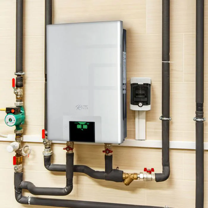 מחמם מים במראה קומפקטי ואספקה בלתי מוגבלת של מים חמים מחמם המים מותקן קרוב לנקודת השימוש