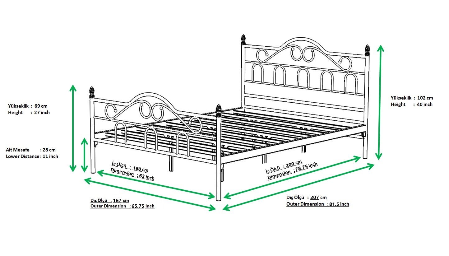 מיטה זוגית ממתכת דגם טרובה רחבה ומעוצבת למזרן 140*190 ס”מ.