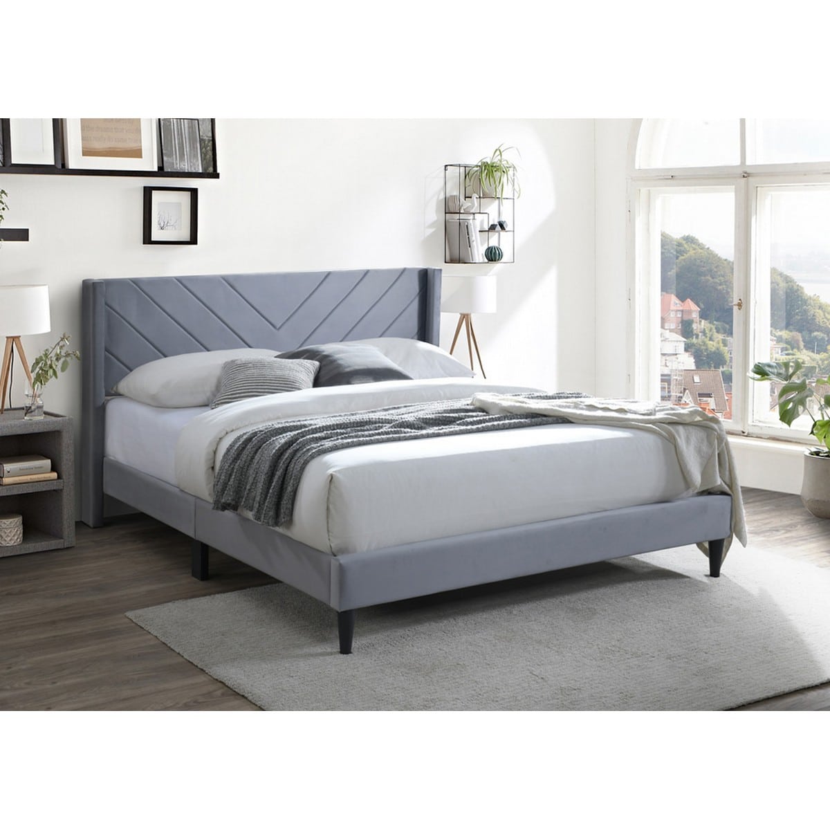 ראש מיטה מעוצב עם תפרי נוי בצורת V.