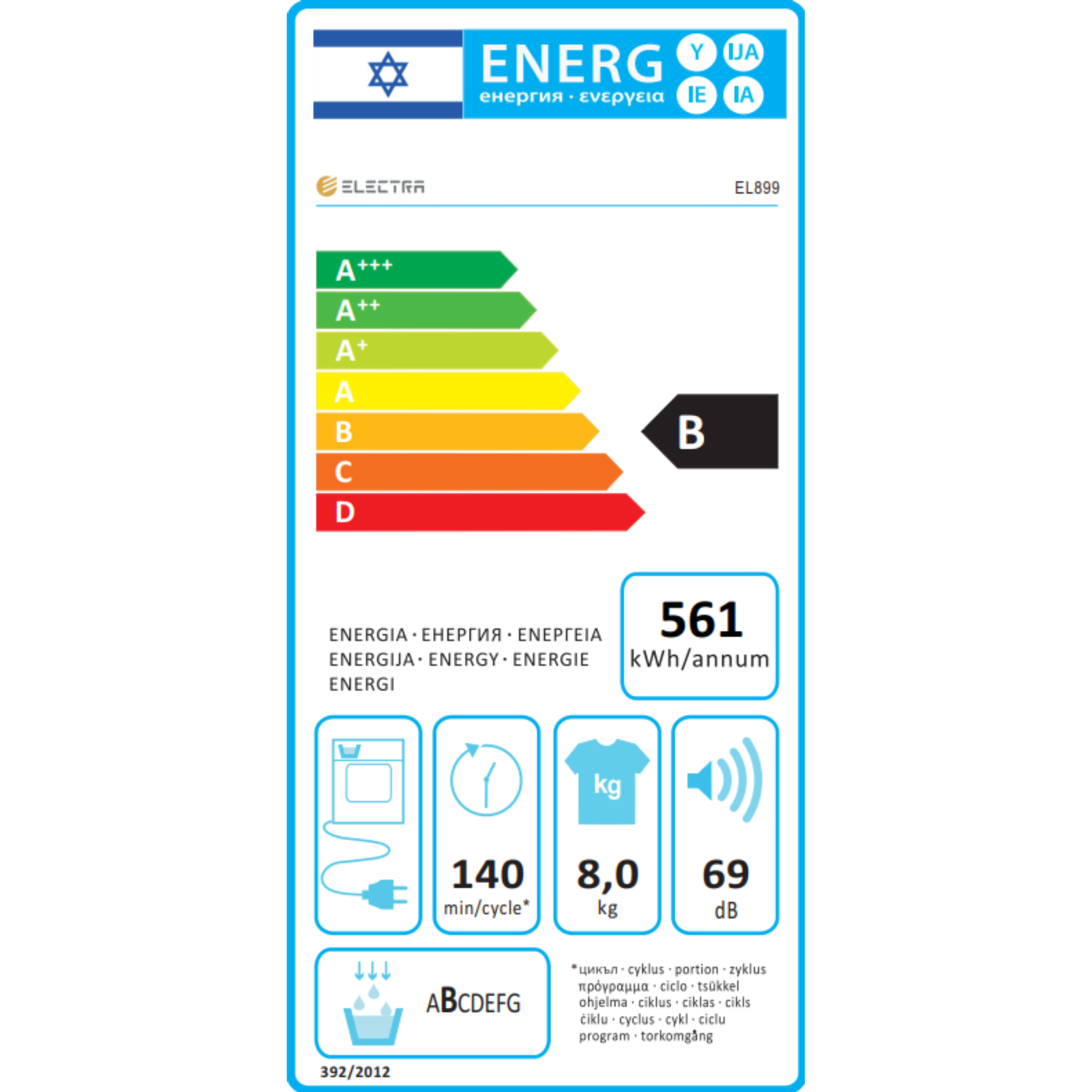 מייבש כביסה קונדנסור 8 ק”ג Electra EL899 אלקטרה