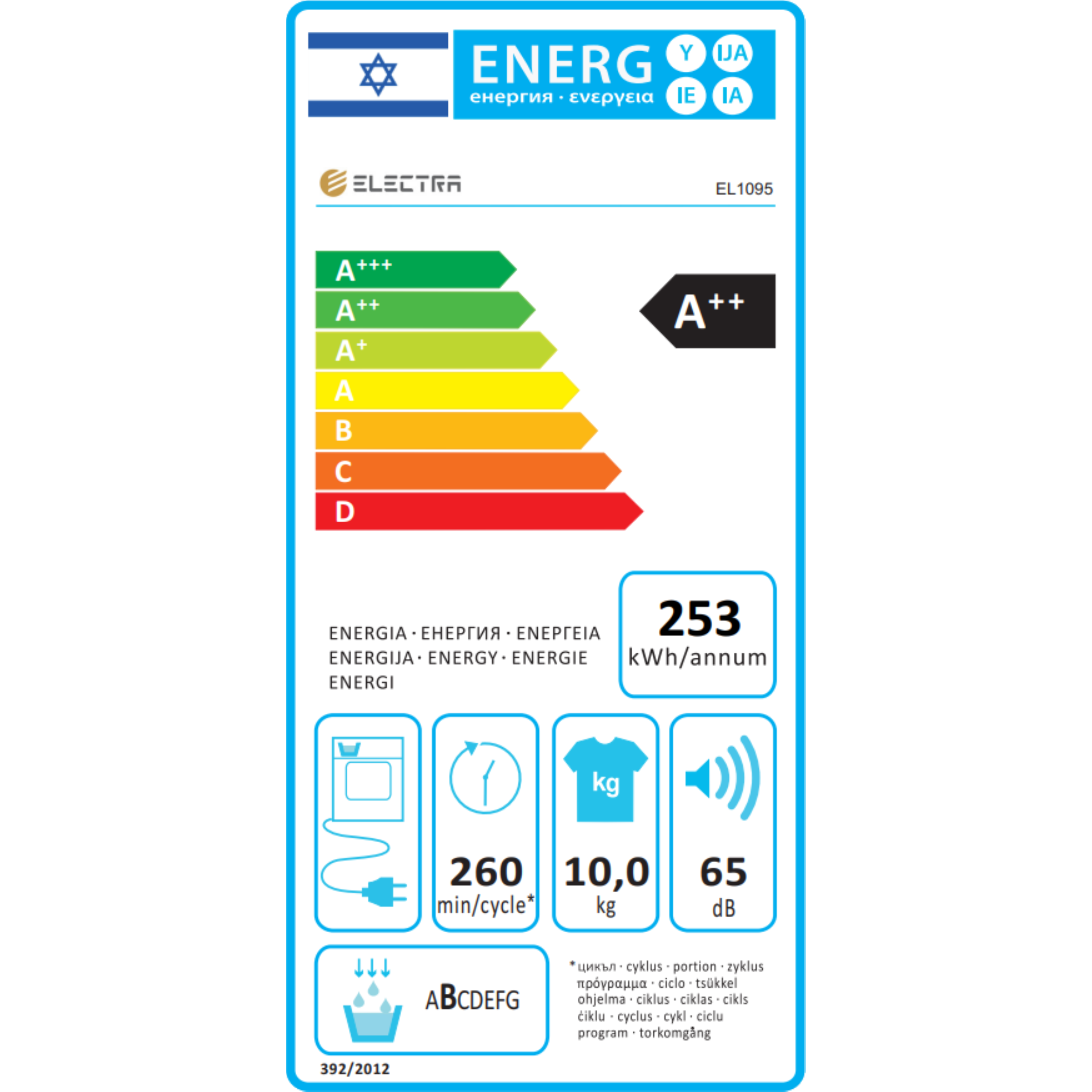 מייבש כביסה פתח חזית 10 ק”ג Electra EL1095 Heat Pump – צבע לבן אחריות ע”י היבואן הרשמי