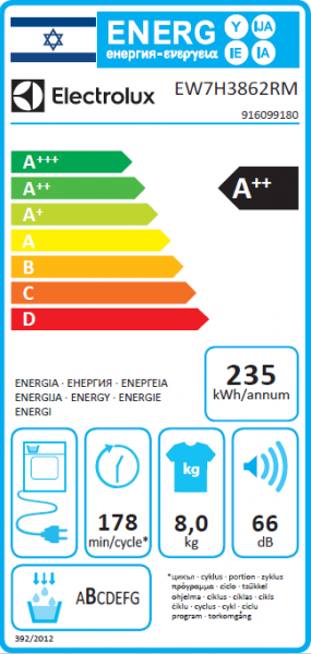 דירוג אנרגטי לפי תקן חדש: ++A