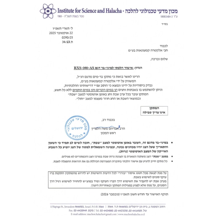 מאושר הלכתית במכון מדעי טכנולוגיה להלכה.