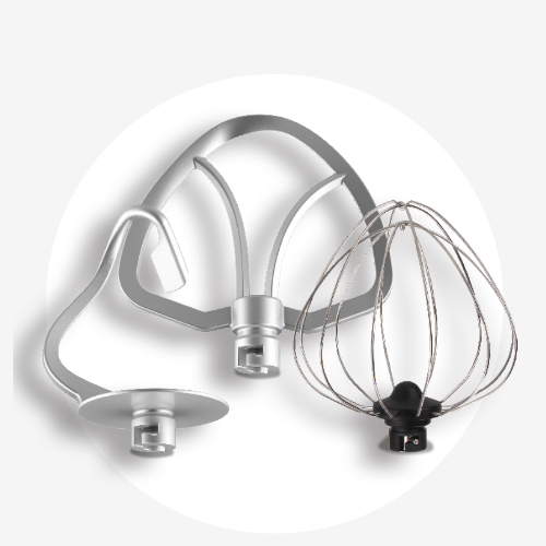 כולל: וו בצק, מקצף שטוח, מטרפה, מפריד חלבון ביצה וכיסוי שקוף