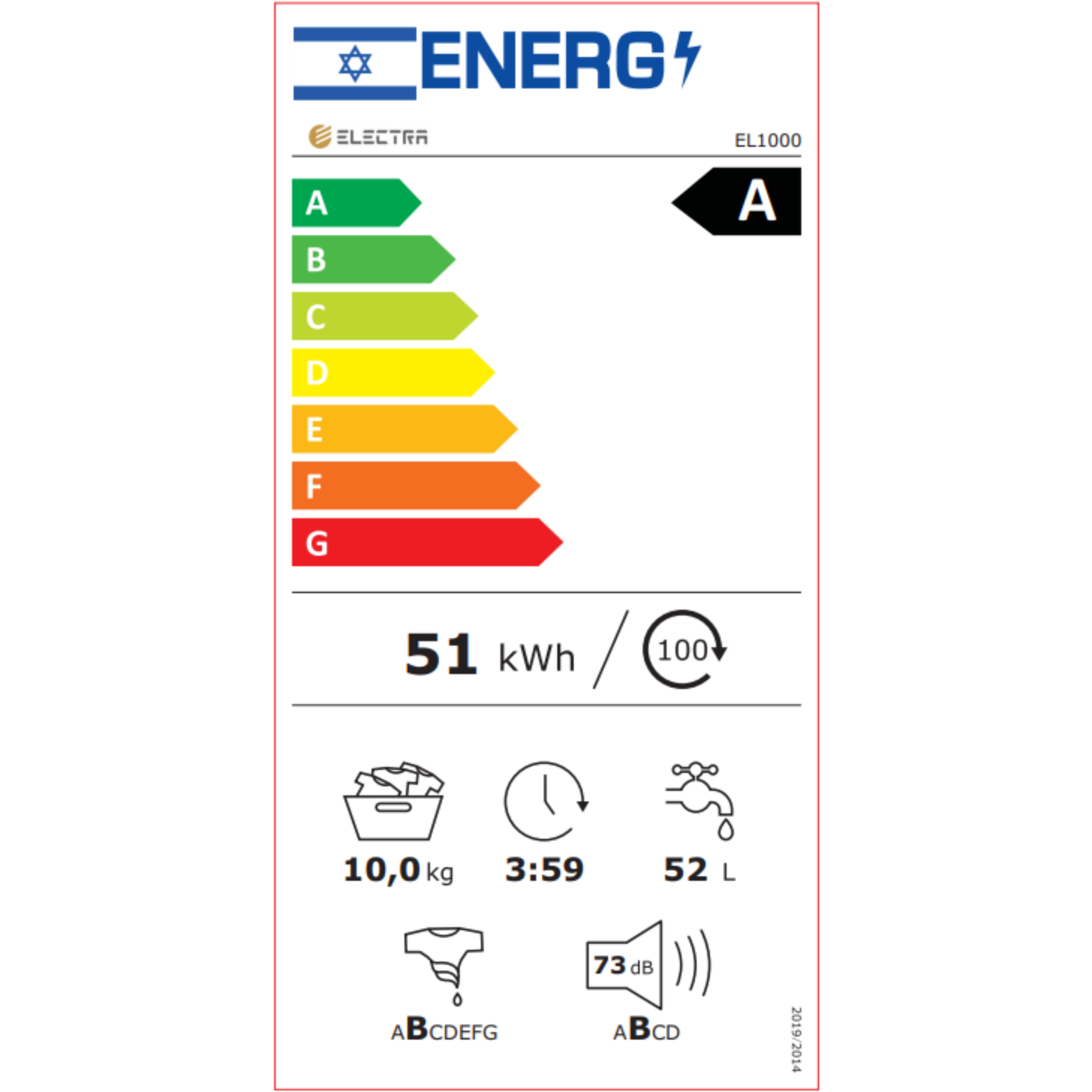 מכונת כביסה חזית 10 ק"ג Electra EL1000 אלקטרה