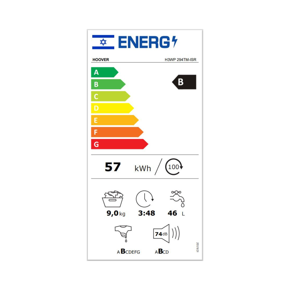 מכונת כביסה 9 ק”ג אינוורטר Hoover H3W294TMISR הובר