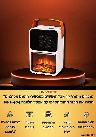 עם חום עוטף ואווירה קסומה! עם מפזר החום הקרמי NRI-404 מבית UNIVERSE