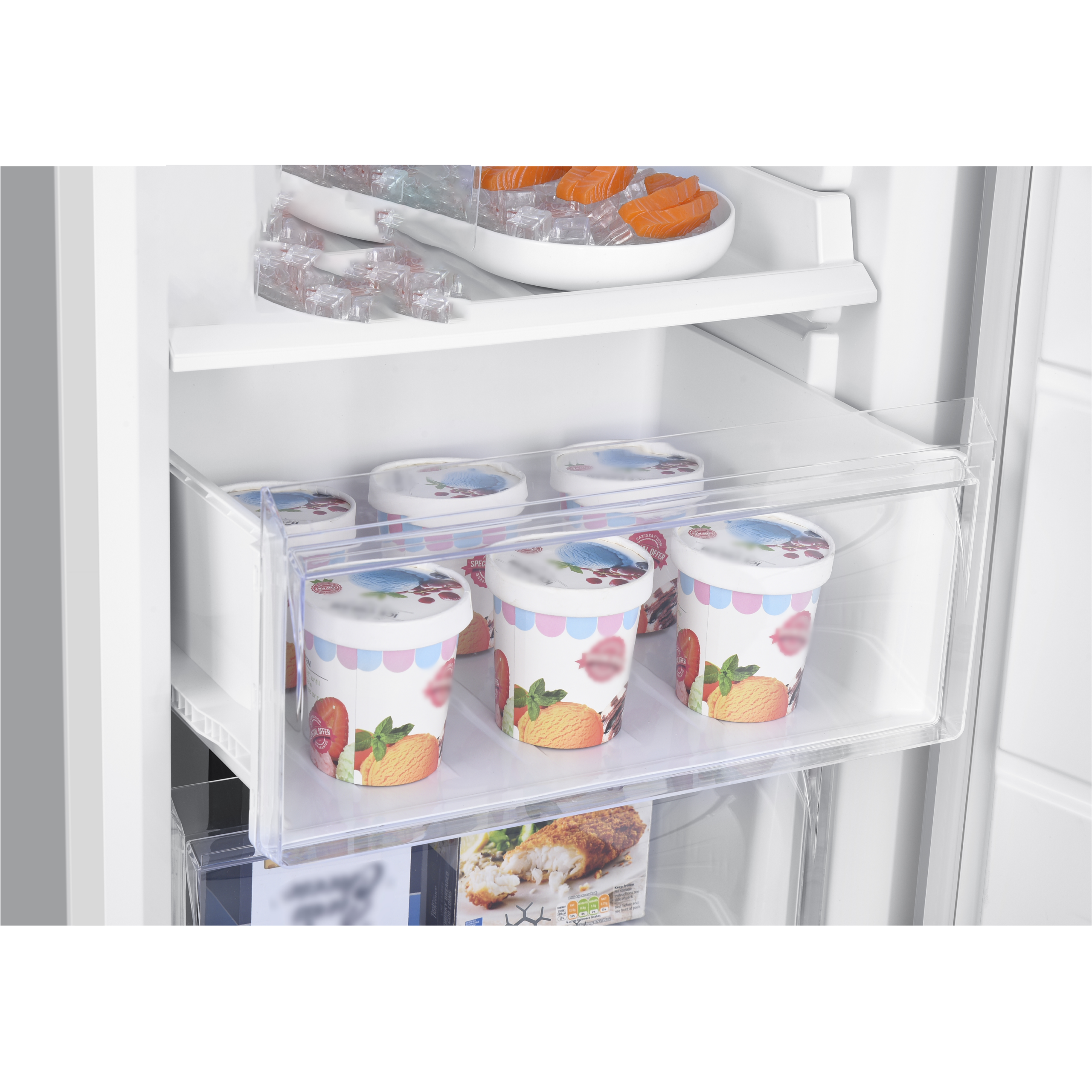 תא בדלת המקפיא הניתן להטייה – מושלם לאחסון והוצאת קופסת פיצה בצורה מהירה ונוחה.