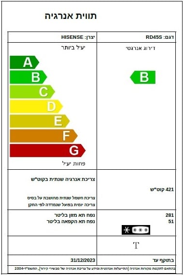 מקרר מקפיא עליון 340 ליטר Hisense הייסנס RD45S