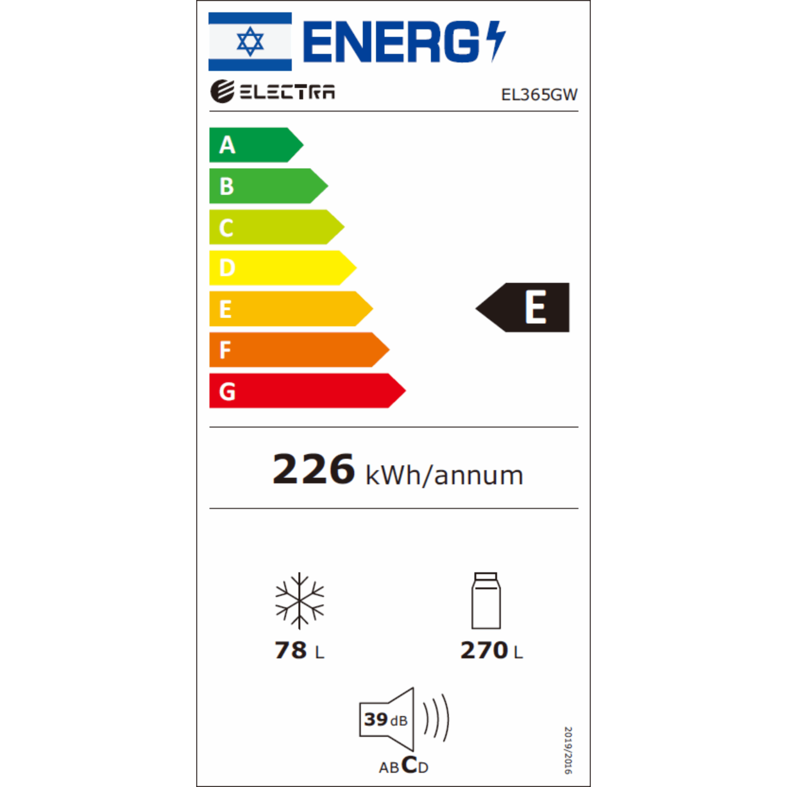 מקרר מקפיא עליון 348 ליטר Electra EL365GW אלקטרה זכוכית לבנה