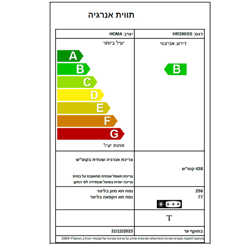 מקרר 2 דלתות מקפיא עליון דגם: HR 390SS