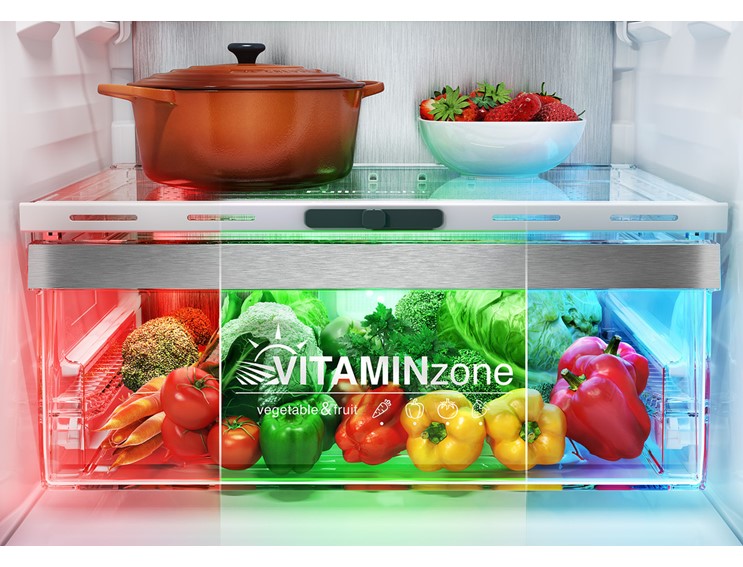 טכנולוגיית ה-VitaminZone רותמת את עוצמת הטבע לתוך המקרר על-ידי שימוש בתאורת LED המדמה