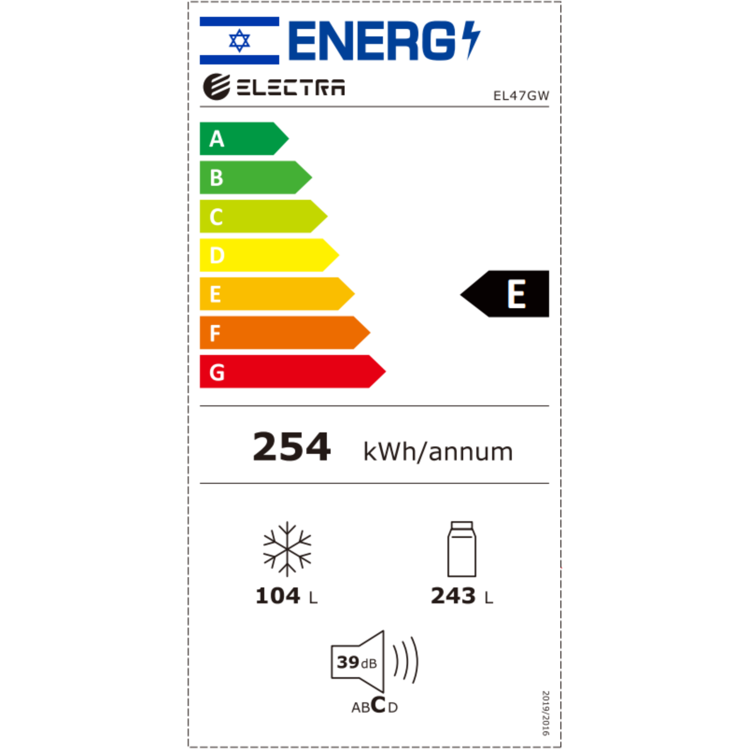 נפח תא קירור: 243 ליטר נטו