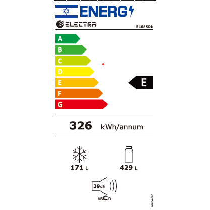 מקרר 4 דלתות 600 ליטר EL685DN אלקטרה ELECTRA נירוסטה מושחרת