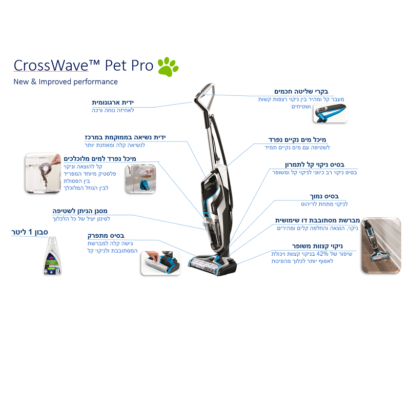 שואב אבק ושוטף רצפות חוטי Bissell דגם CROSSWAVE PET PRO 2225N