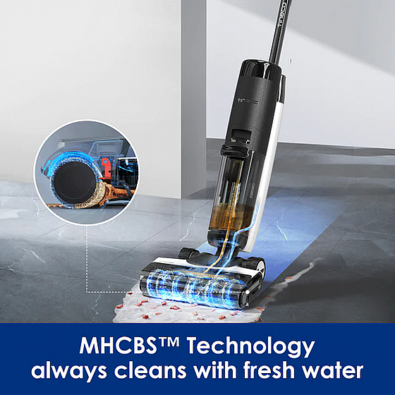 מערכת השטיפה הרציפה של Tineco מבטיחה שכל רצפה תנוקה באמצעות מברשת רולר רטובה ונקייה – כך שהלכלוך יורד במהירות מהרצפה, ללא מריחה חוזרת.