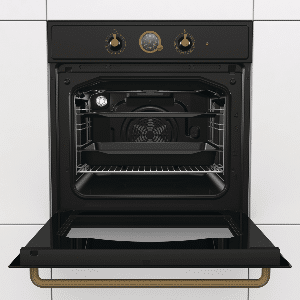 תנור בנוי מולטיסיסטם מעוצב רטרו עם כפתורים מוזהבים