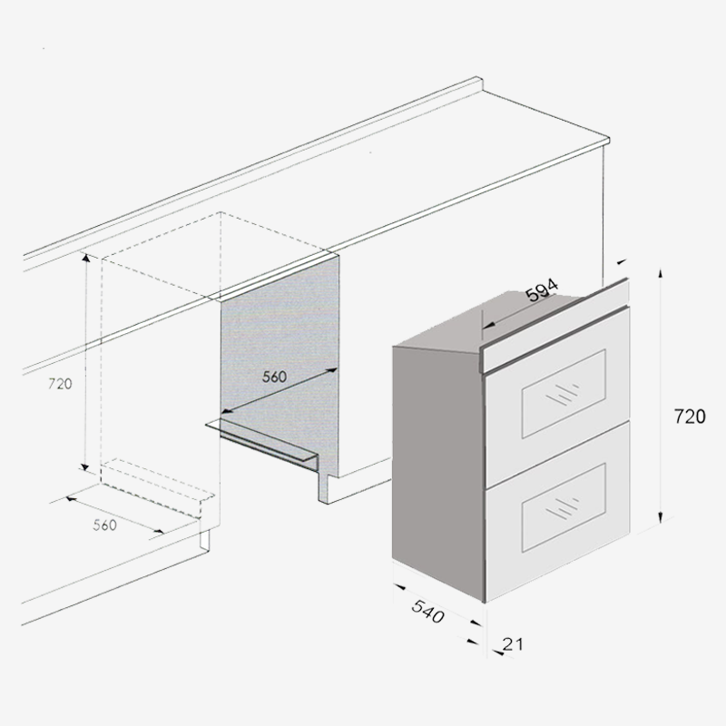 מתאים להתקנה מתחת לשיש (גובה 72 ס”מ)